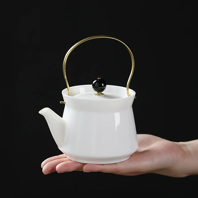 Белый фарфоровый горшок с подъемным лучом, медный балка, баранина, Нефритовый чайник с фильтром, чайник для приготовления чая, бытовые прина...
