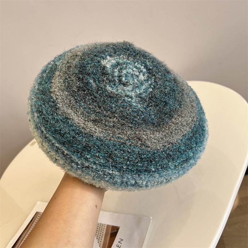 Берет женский из цветной шерстяной пряжи с петлями, с постепенным переходом цвета, новая модная вязаная шляпа художника на осень и зиму M(56-58cm)