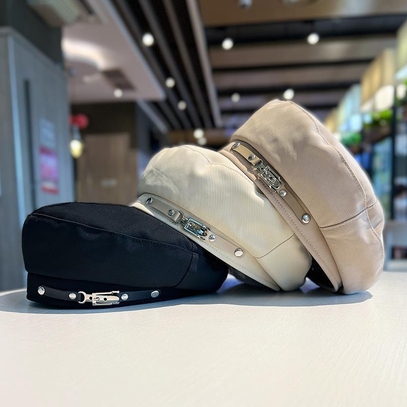 Берет с металлической пряжкой, шапка-бини, плоская кепка, однотонная осенняя женская беретная шапка