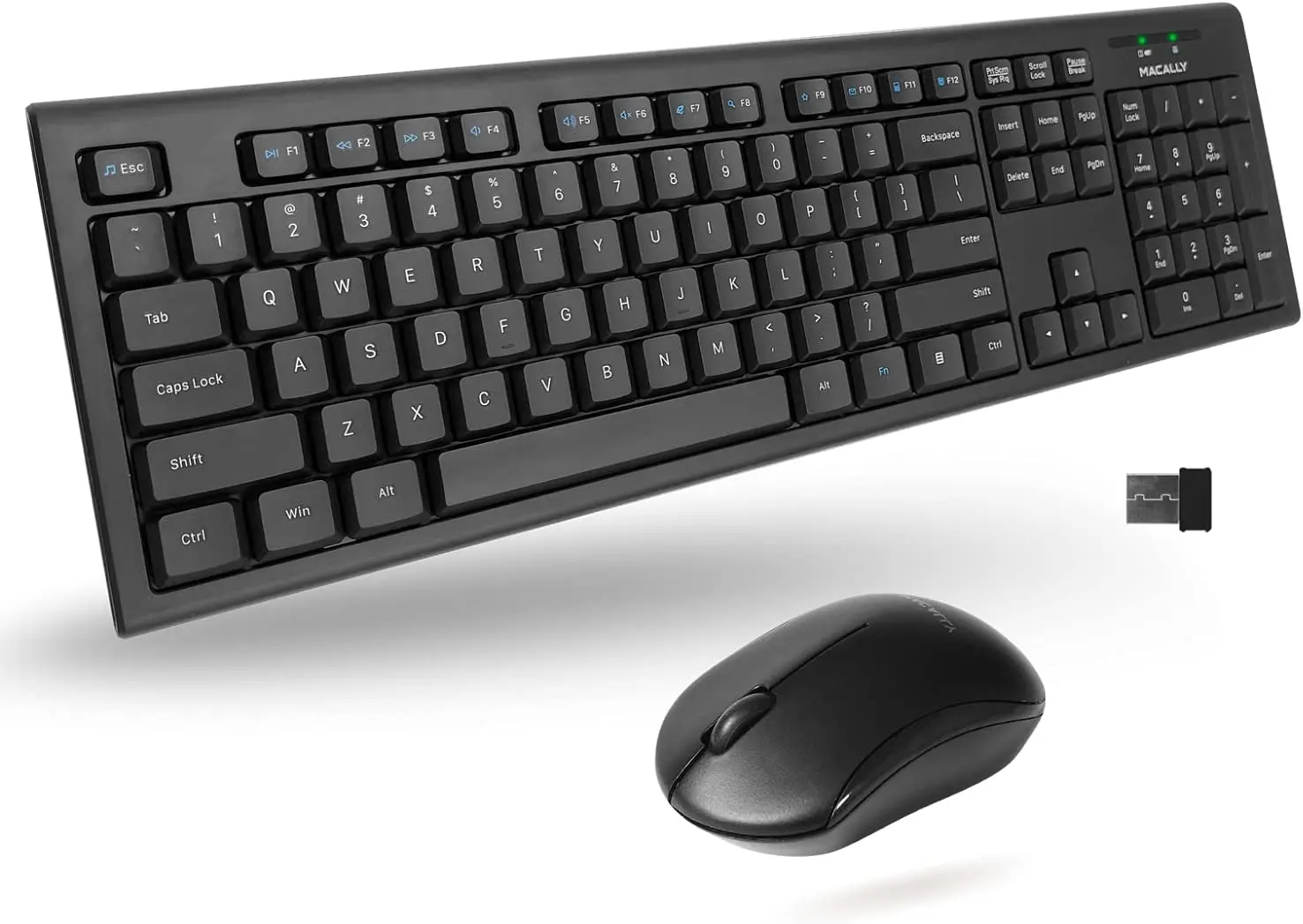 Беспроводная клавиатура и мышь, полноразмерная беспроводная мышь и клавиатура Macally 2,4G для ПК, настольного компьютера, ноутбука, ноутбука,