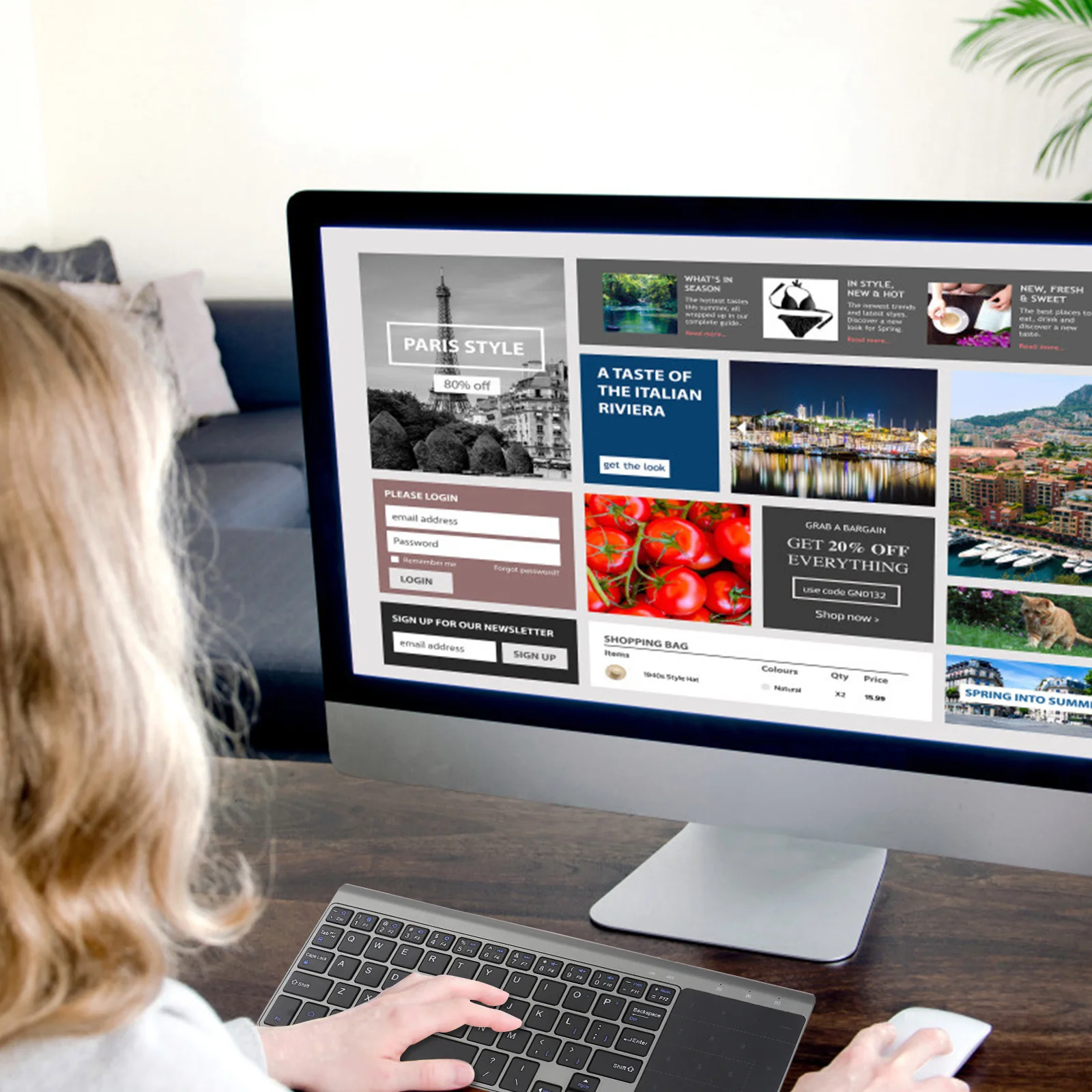 Беспроводная компьютерная клавиатура, сенсорная панель, цифровая панель, портативная ультратонкая беспроводная бесшумная клавиатура, прочный материал ABS для офисной работы