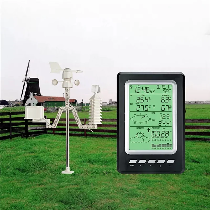 Беспроводная метеостанция с солнечной батареей WS1030, 433 МГц, температура, влажность, дождь, давление, ветер, скорость, направление ветра