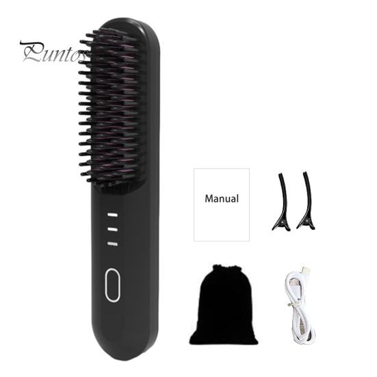 Беспроводная щетка-выпрямитель для волос 3 температуры Быстрый нагрев Перезаряжаемая от USB Дорожная портативная горячая щетка Электрическая пушистая укладка вьющихся волос Распутывание волос чёрный