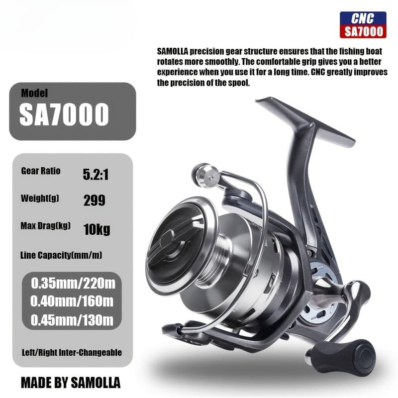 Бесщелевая морская рыболовная катушка с дальним забросом и длинной вращающейся рыболовной катушкой, металлическая рукоятка-рокер 5.2:1 Высокоскоростная передача Мелкая шпуля Косая шпуля SA1000 серый