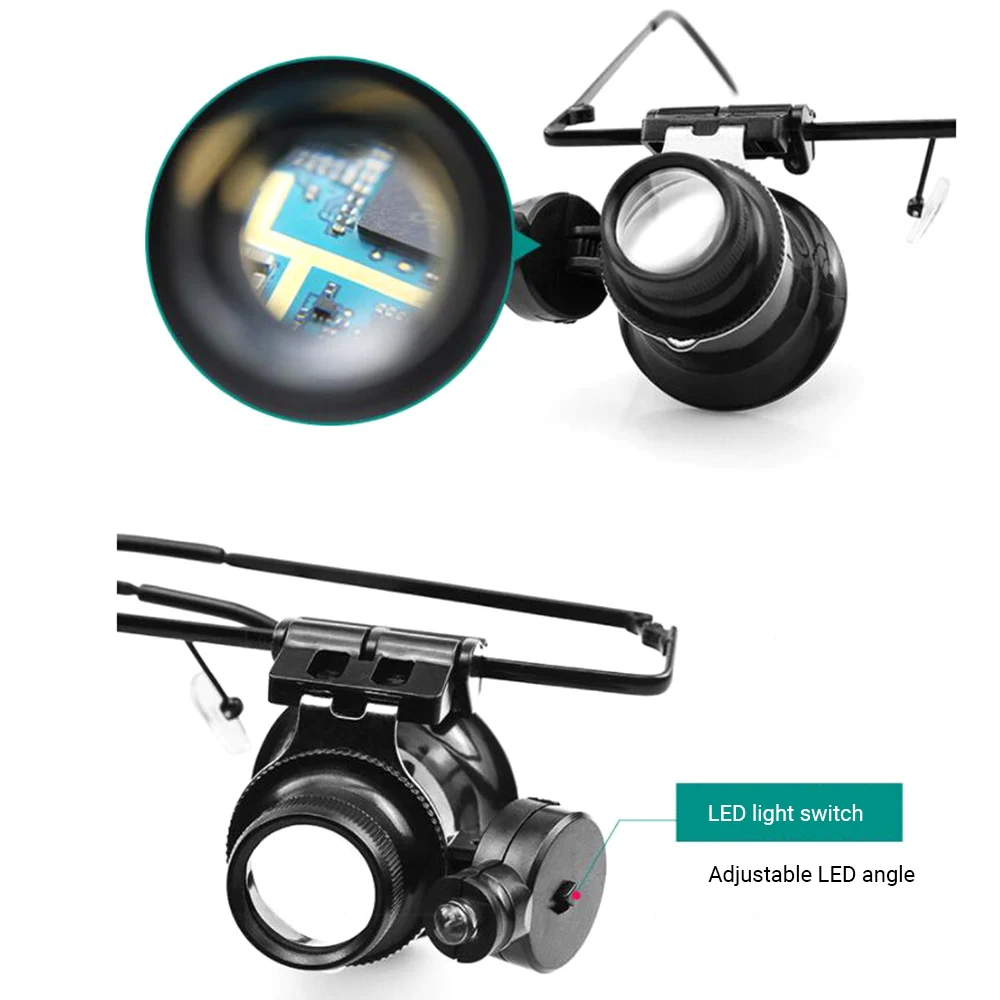 Бинокулярная лупа для ювелирных изделий 20X светодиодный Ной лампой, античное увеличительное стекло, Ювелирная Лупа для часов, поделок, резь...