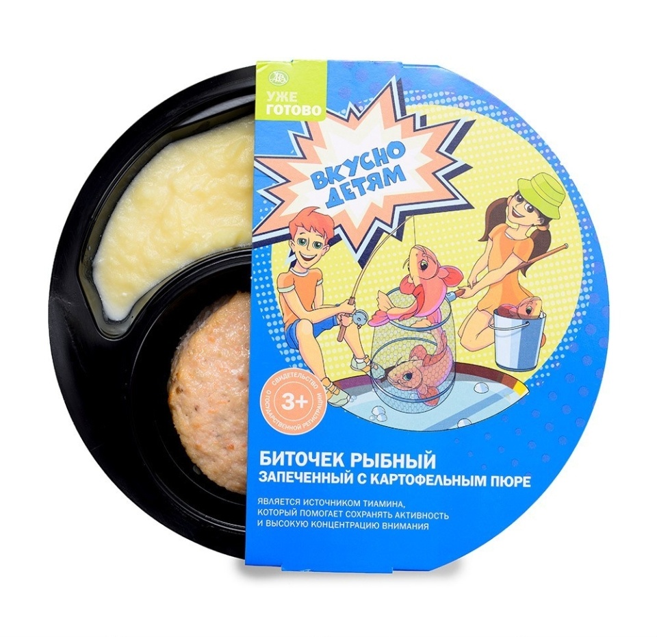 Биточек рыбный запеченный с картофельным пюре Вкусно детям Уже Готово