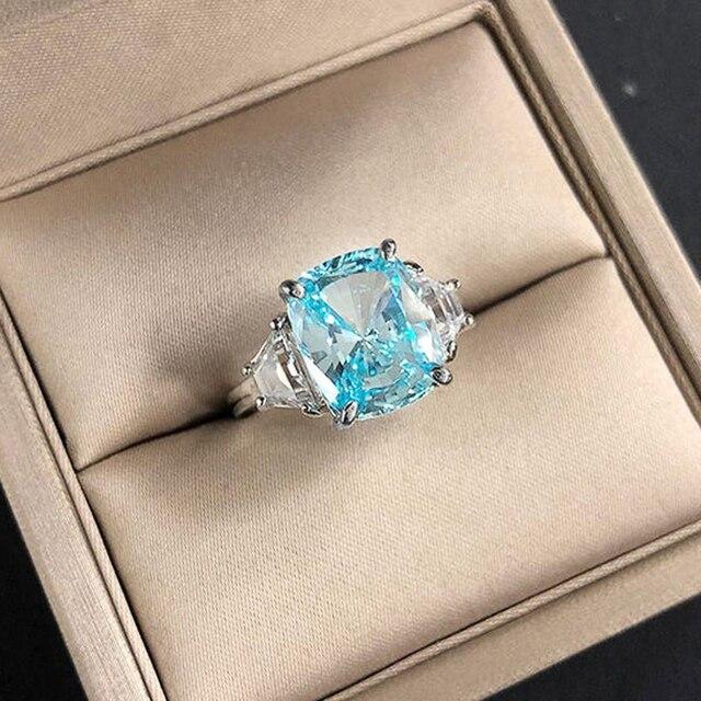 Благородное синее кольцо с кубическим цирконием для женщин, серебряное цветное кольцо, Partysu, стильные женские обручальные кольца, ювелирные изделия, подарок на день рождения 10
