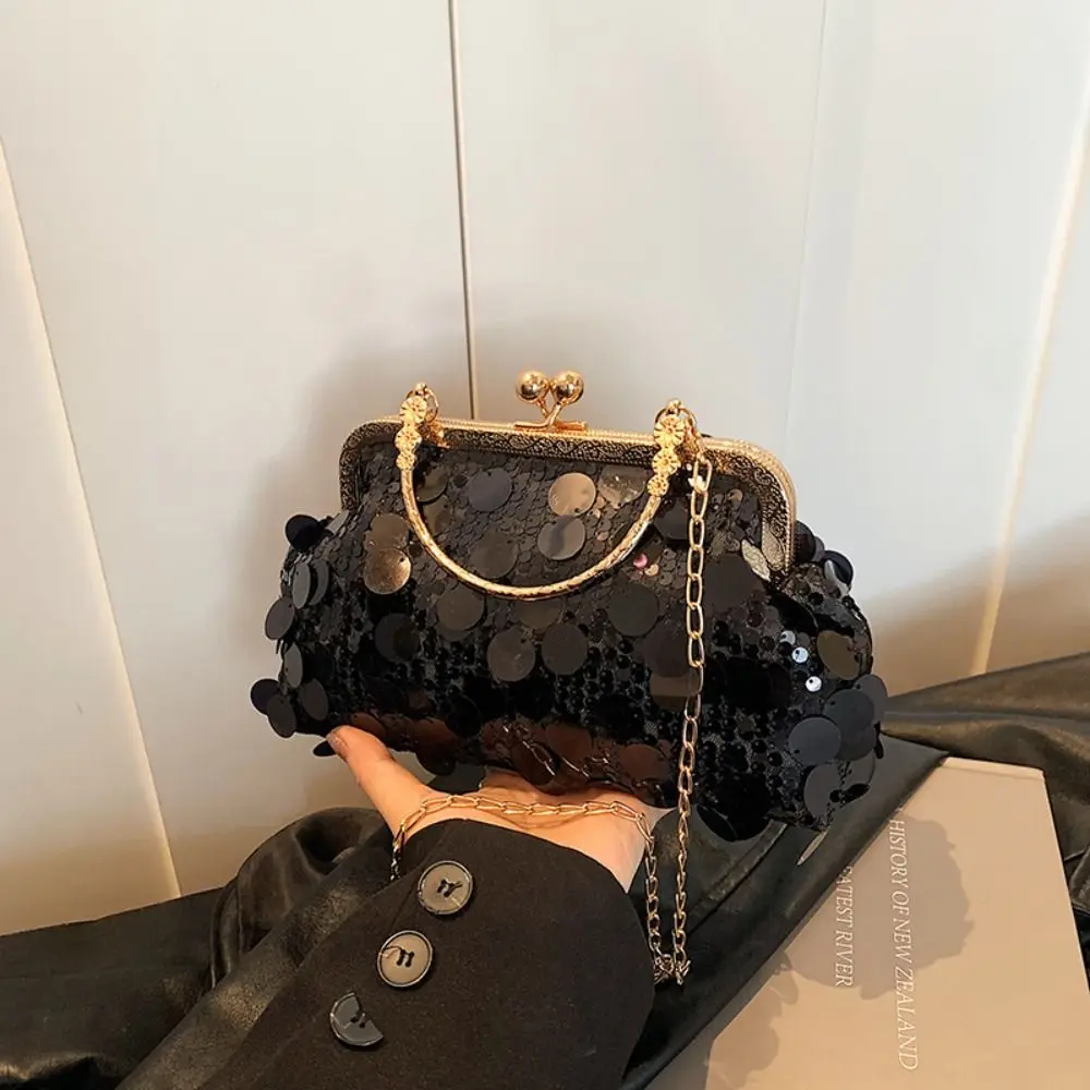 Блестящая вечерняя банкетная сумка в стиле ретро с пряжкой и блестящей цепочкой, сумка через плечо, большая вместительная сумка на одно плечо для девочек