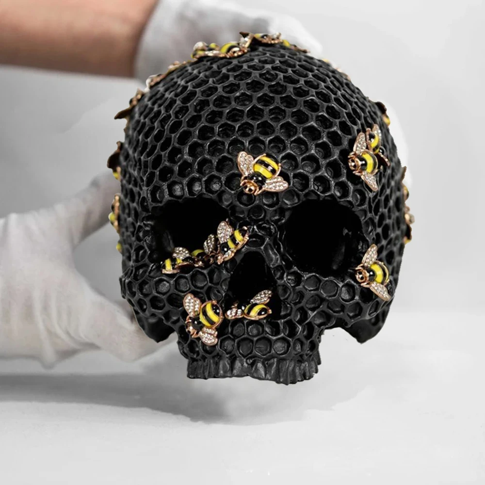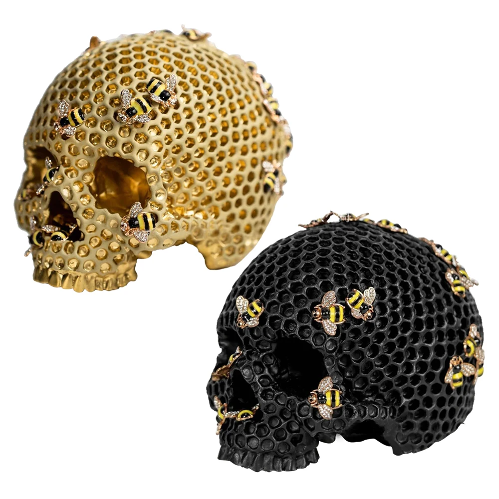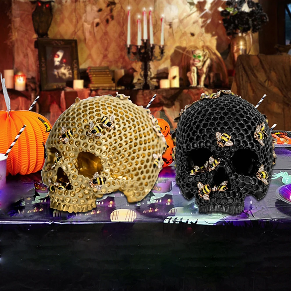 Блестящая смола, модель черепа, голова, настольные украшения, ретро ремесла, бытовые блестящие подарки на Хэллоуин для бара, украшения для в...