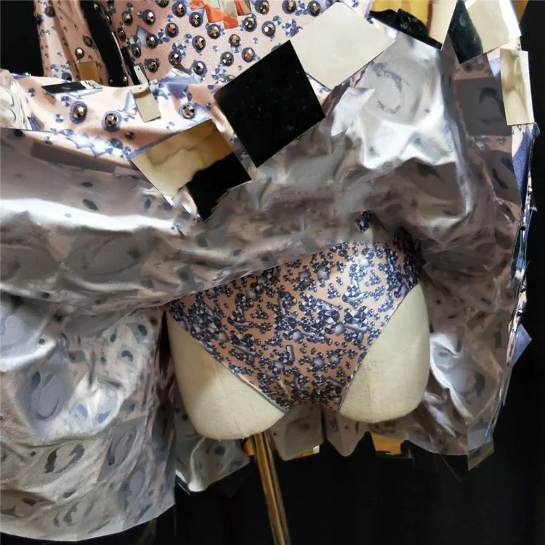 Блестящее Серебряное платье с камнями, Женский танцевальный костюм певицы, яркое боди, цельнокроеное платье для ночного клуба, вечерние платья