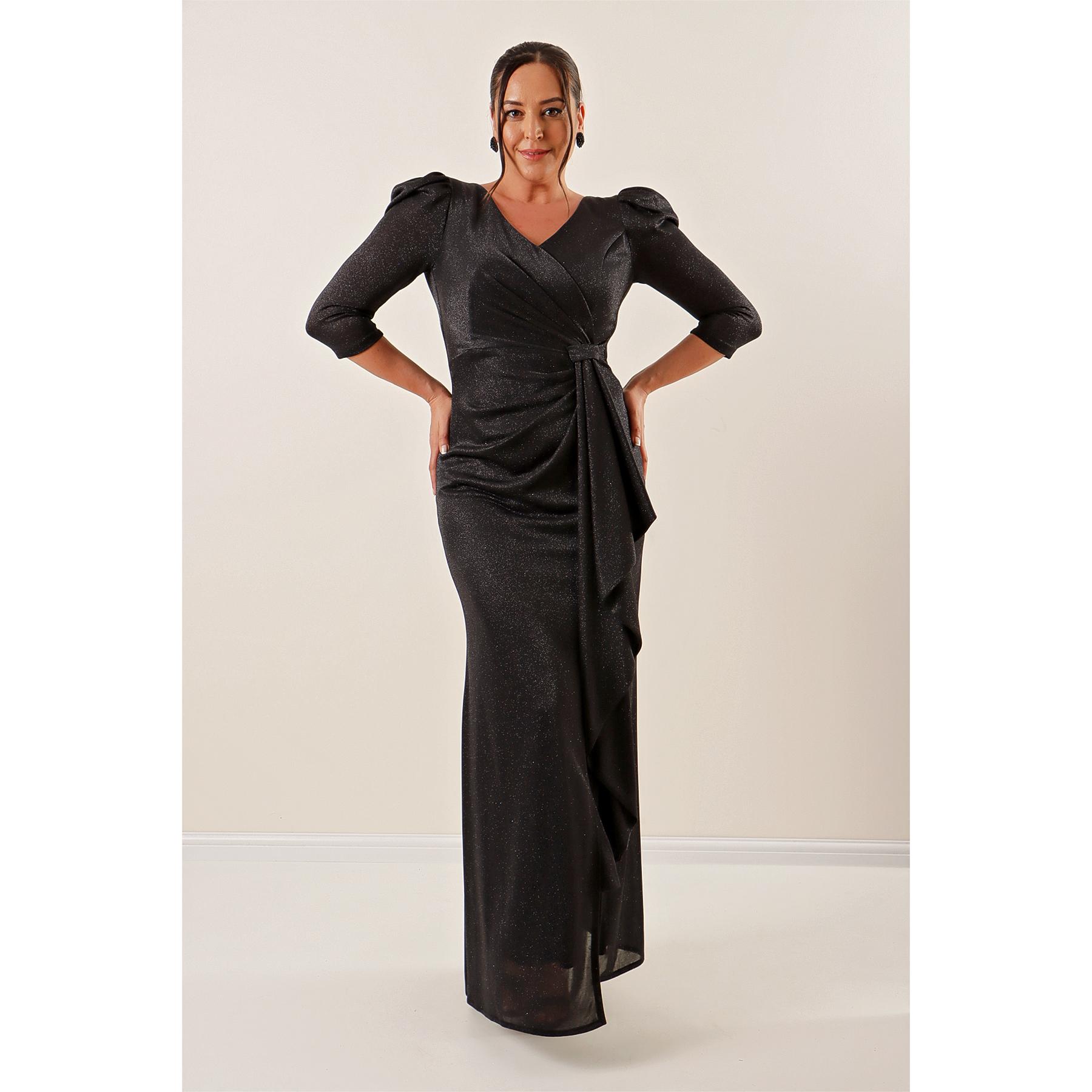 Блестящее длинное платье большого размера с рукавами и оборками спереди Truvakar на подкладке 3XL чёрный