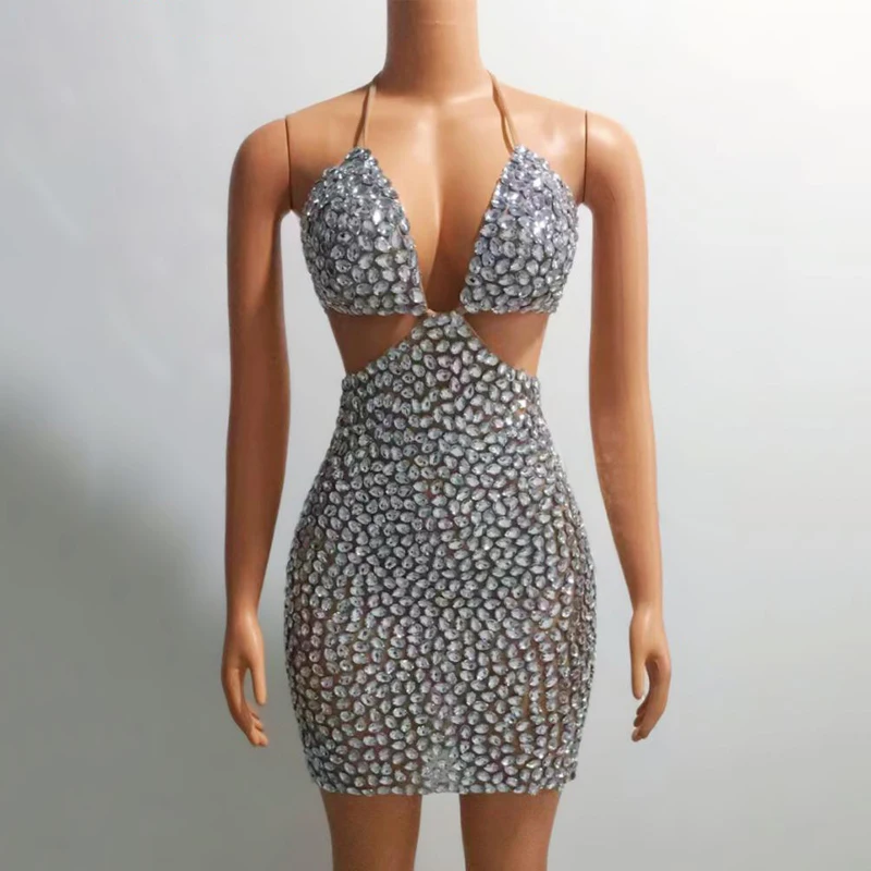 Блестящее серебристое мини-платье, костюм для празднования дня рождения, праздничные наряды, женские вечерние платья для певицы, модель XS4981