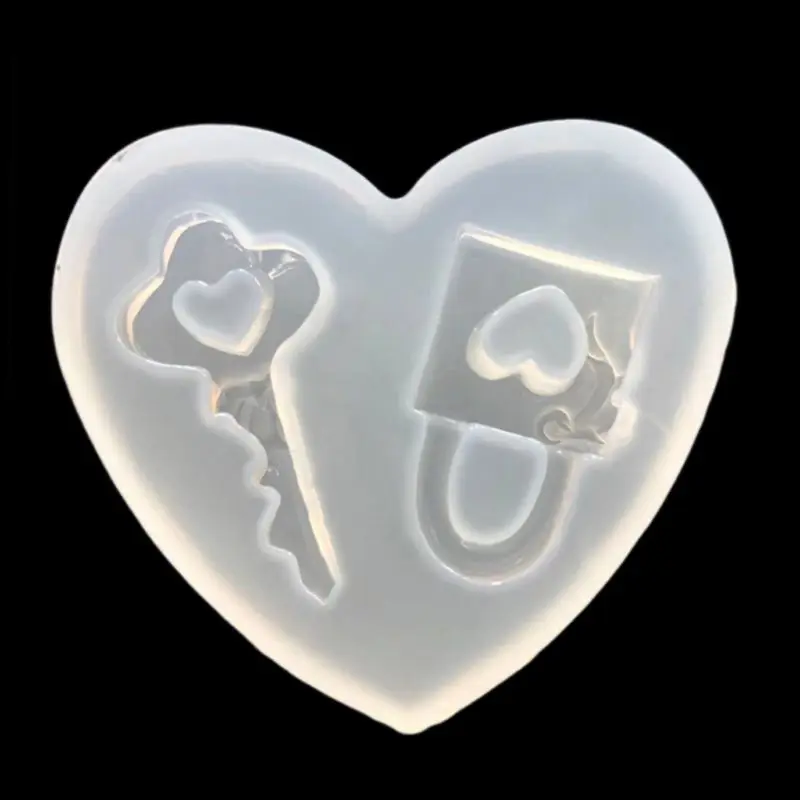Блестящие глянцевые силиконовые смолы формы для ключей замок сердце форма для ключей Сделай Сам брелок Подвеска ювелирные изделия эпоксид...