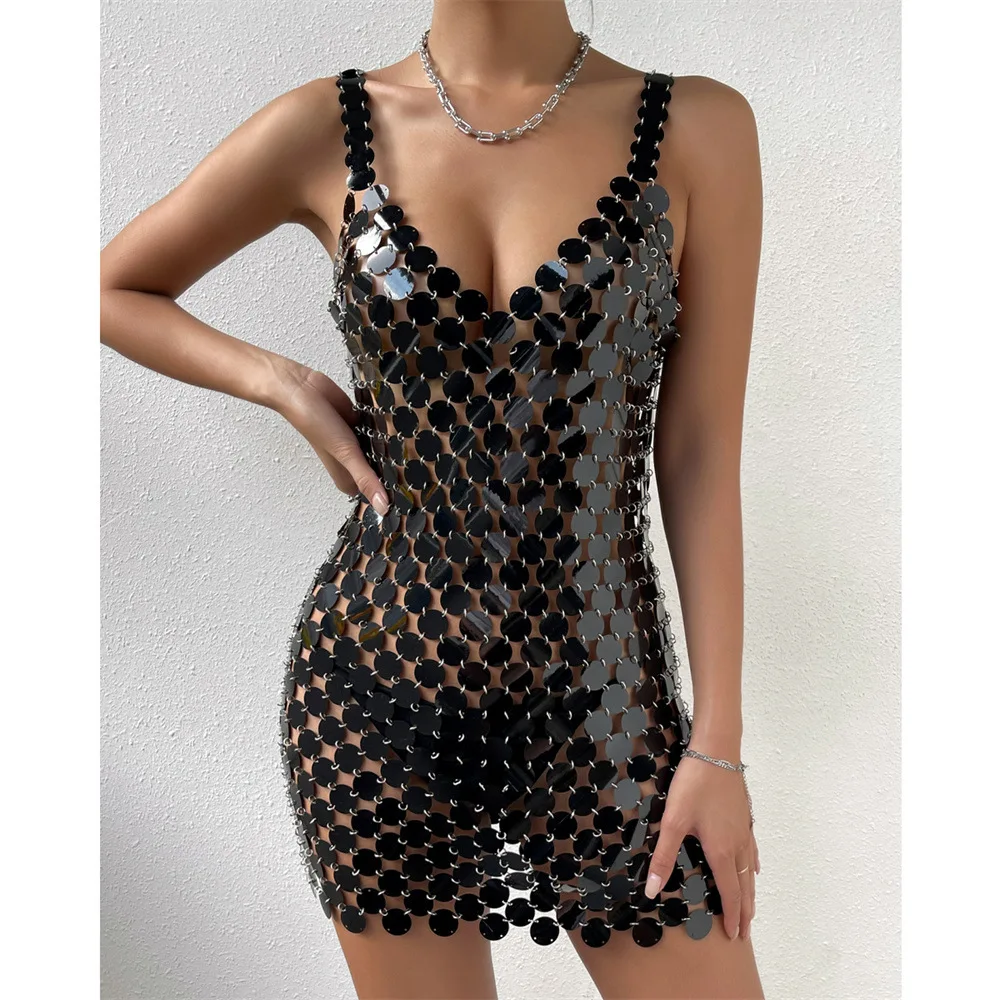 Блестящие блестящие однотонные облегающие платья с V-образным вырезом, цепочка для тела, украшения для женщин Вечерние вечернее платье, лет...