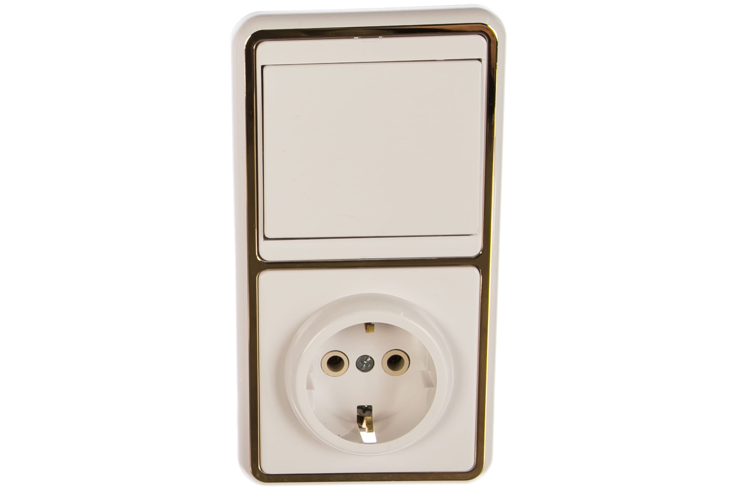 Блок розетка+выключатель Кунцево-Электро Бэлла БКВР-031, выключателей: 1, розеток: 1, белый/золотой (5820), БКВР-031