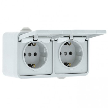 Блок розеток EKF PROxima Прага, открытый монтаж, 2-х постовая, с з/к, со шторками, с крышкой, 16A, в сборе, IP44, белый (EKRR16-050-10-440)