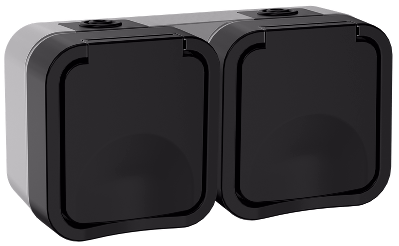 Блок розеток IEK TORS TS122, открытая, 2-х постовая, с з/к, со шторками, с крышкой, 16А, в сборе, IP55, графит, 1 шт. (TS-R26-16-55-G-K53), TS122