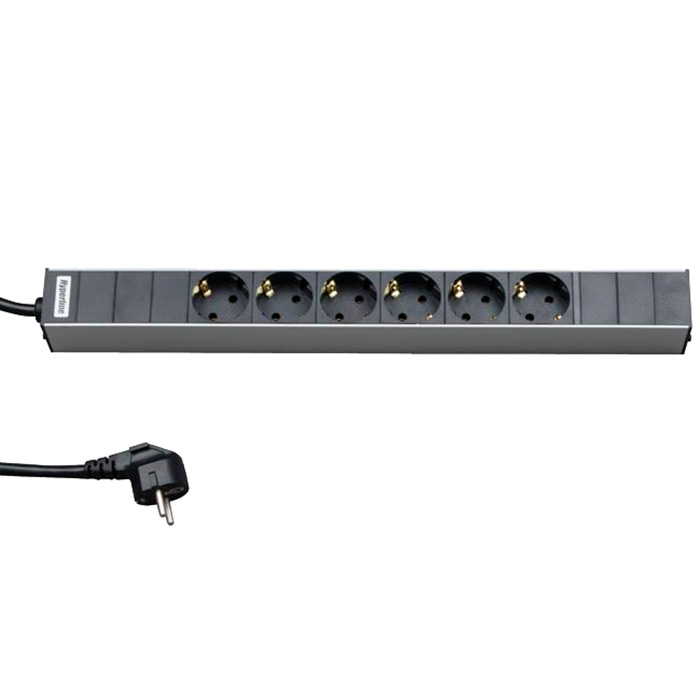 Блок розеток (PDU) Hyperline, кол-во розеток:6, 16А, черный, кабель питания 2.5 м