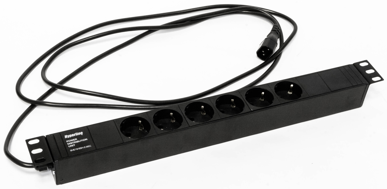 Блок розеток (PDU) Hyperline, кол-во розеток:6 (6xЕвро), 10А, черный, кабель питания 2.5 м (SHE19-6SH-2.5IEC)