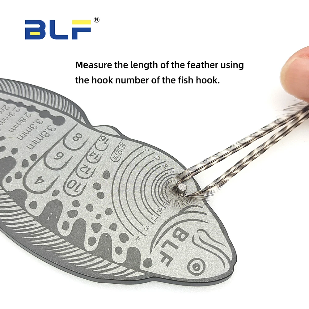 Блф-лента для ловли нахлыстом, приманка для ловли нахлыстом, инструмент размера, рыболовный крючок из алюминиевого сплава, измерительная линейка с перьями, снасти, аксессуары