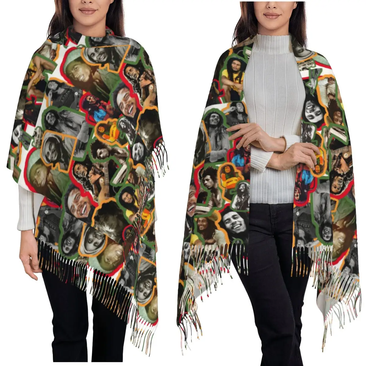 Боб Марли Альбом Регги Музыка Ямайский Стиль Шарф Шарфы с кисточками для женщин Теплые шали и накидки Большая осенне-зимняя шаль