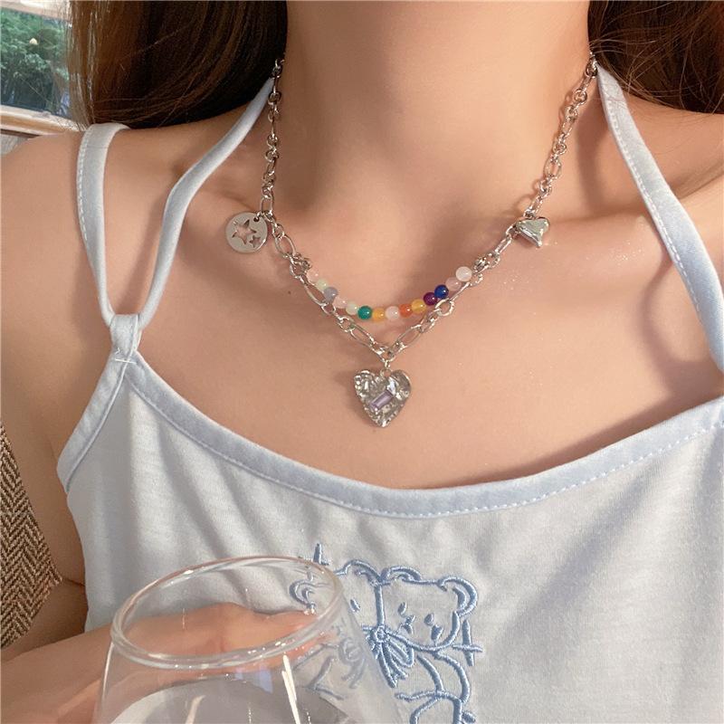 Богемные длинные бусины, мини-бусины, кулон, женское серебряное многослойное ожерелье в форме сердца, ювелирные изделия
