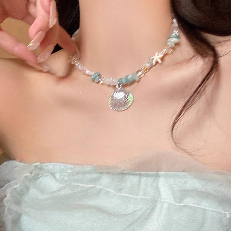 Богемный натуральный камень бусины цепочка ключицы ожерелье шарм морская звезда раковина бусины риса ожерелье чокер женские пляжные украшения A4