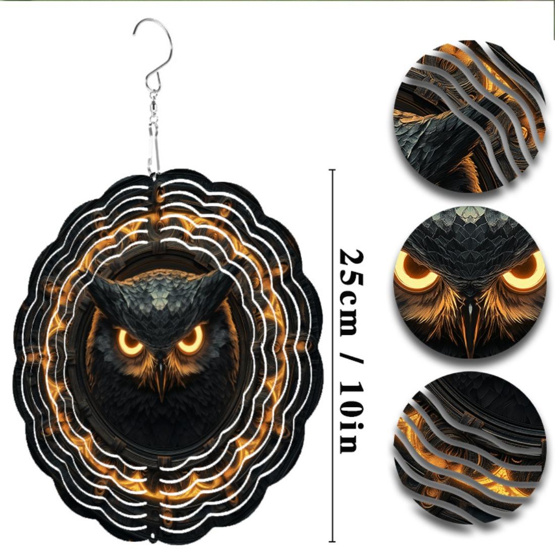 Богемская сова, колокольчик ветра с вращающимся на 360° крючком - Без батареек, Металлический декор для балкона, Без перьев - Идеальный памятный подарок для 01A