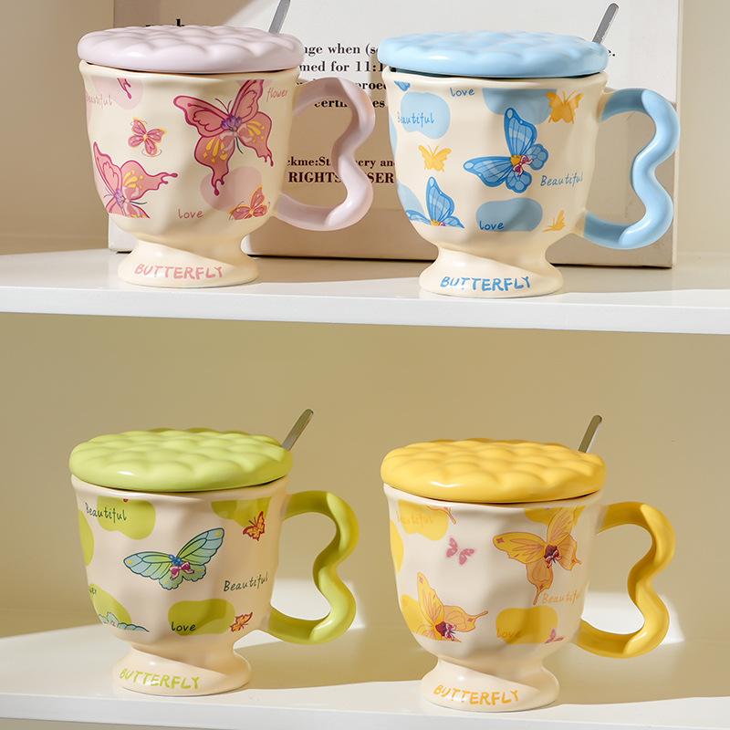 Бокал для девочек-бабочек с крышкой и ложкой, персонализированная креативная кружка, офисная и домашняя керамическая чашка, чашка для подарка на открытие 330ML