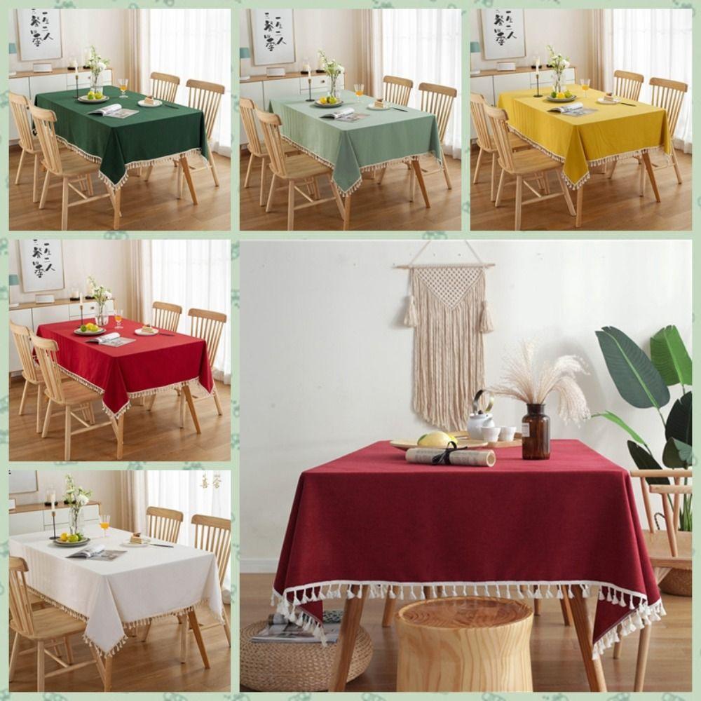 Более толстая однотонная скатерть Хлопчатобумажная крышка стола Мягкие кисточки Скатерть Рождество