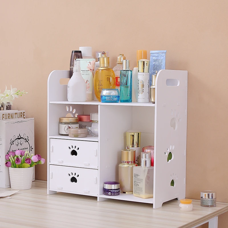 Большая Белая Косметическая деревянная пластиковая коробка для хранения, Настольный ящик, отделочная коробка для ухода за кожей с крышкой, ...