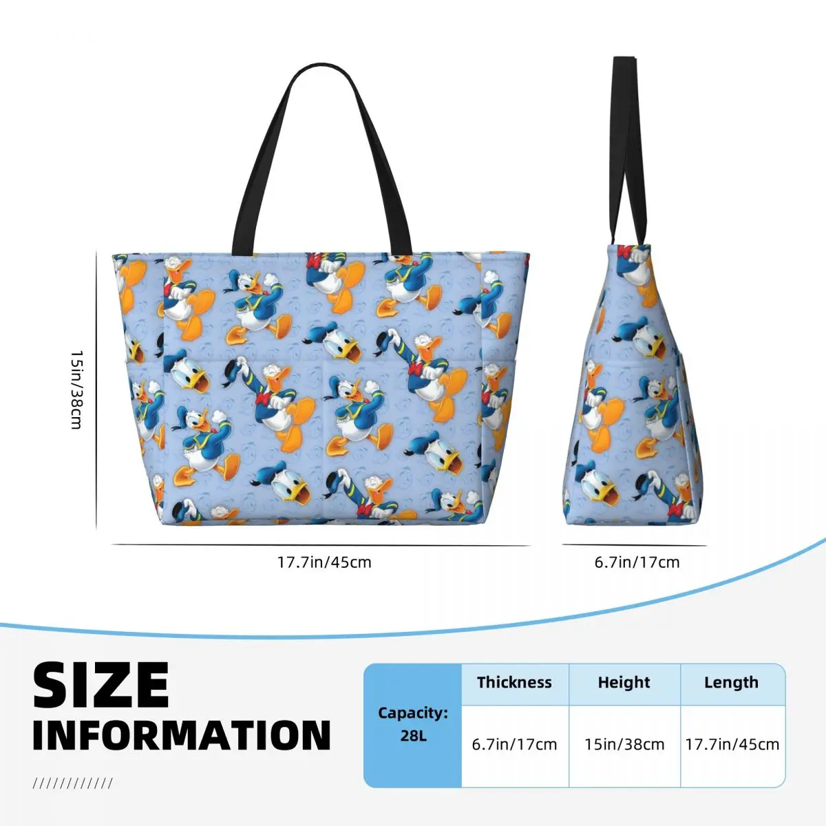 Большая Заказная Сумка-тоут с принтом Дональда Дак, женская сумка-шоппер через плечо с мультяшными комиксами, Пляжная дорожная сумка для спортзала