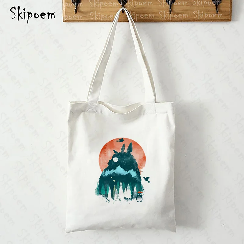 Большая Холщовая Сумка для покупок, Пляжная вместительная белая Сумочка, Милый Винтажный школьный портфель в стиле Харадзюку, с мультяшным ...
