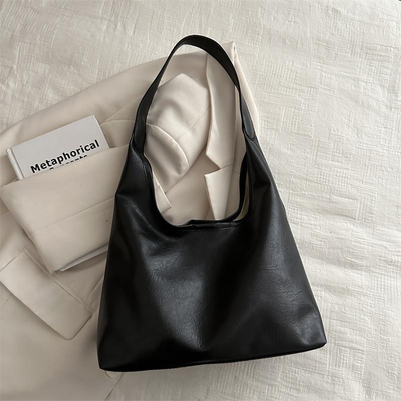 Большая вместимость модная фактура сумка через плечо женская ранняя весна универсальная сумка подмышкой сумка-тоут чёрный