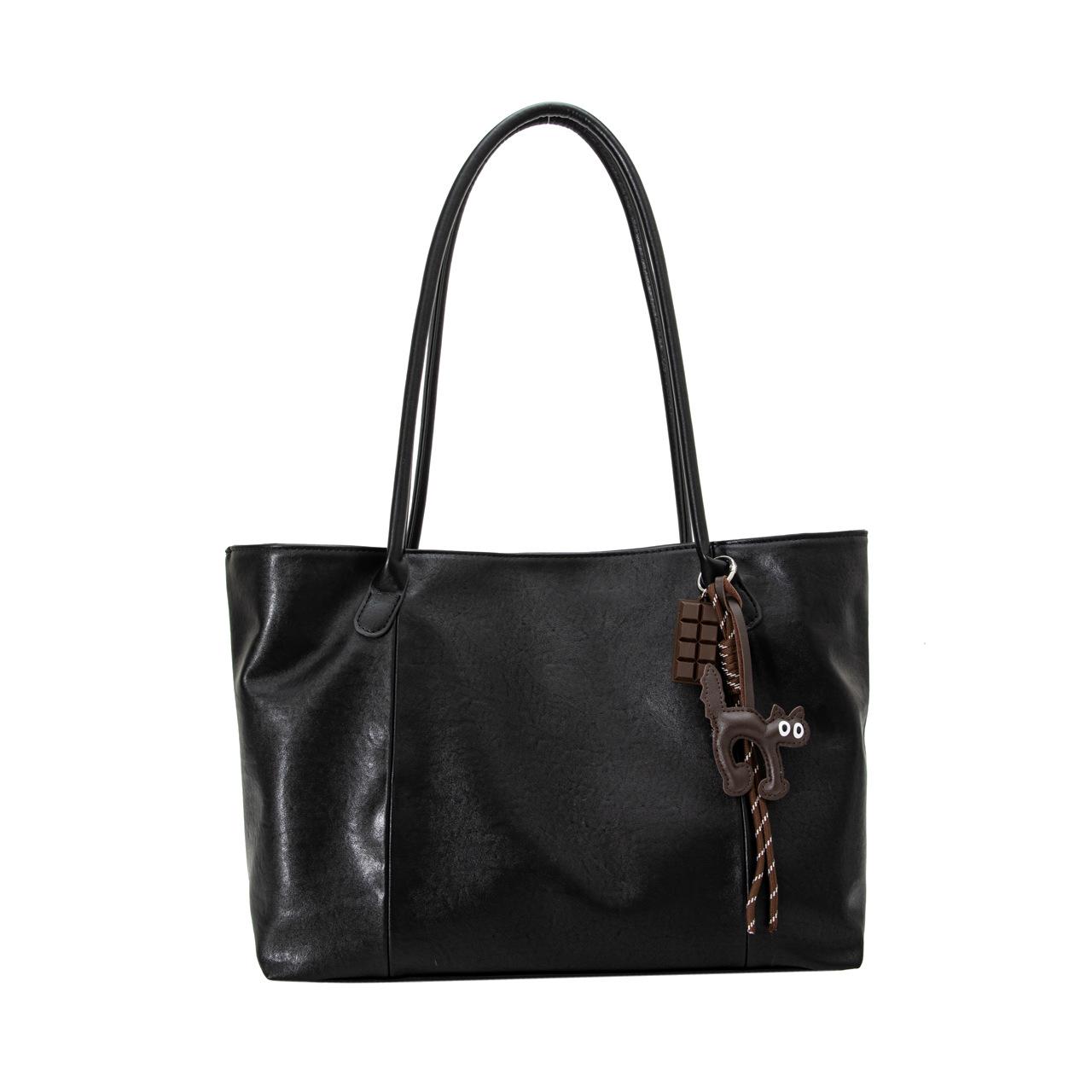 Большая вместительная портативная сумка-тоут женская осенне-зимняя ретро простая модная универсальная сумка через плечо на подмышку Without pendant чёрный