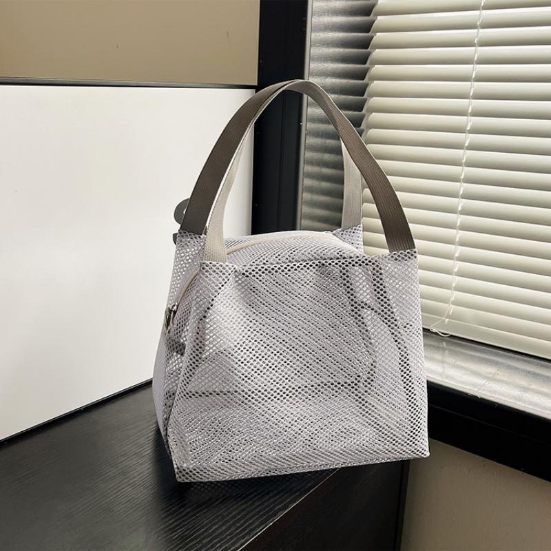 Большая вместительная сетчатая сумка с ручкой, дорожная косметичка, переносная пляжная сумка, косметичка на молнии серый