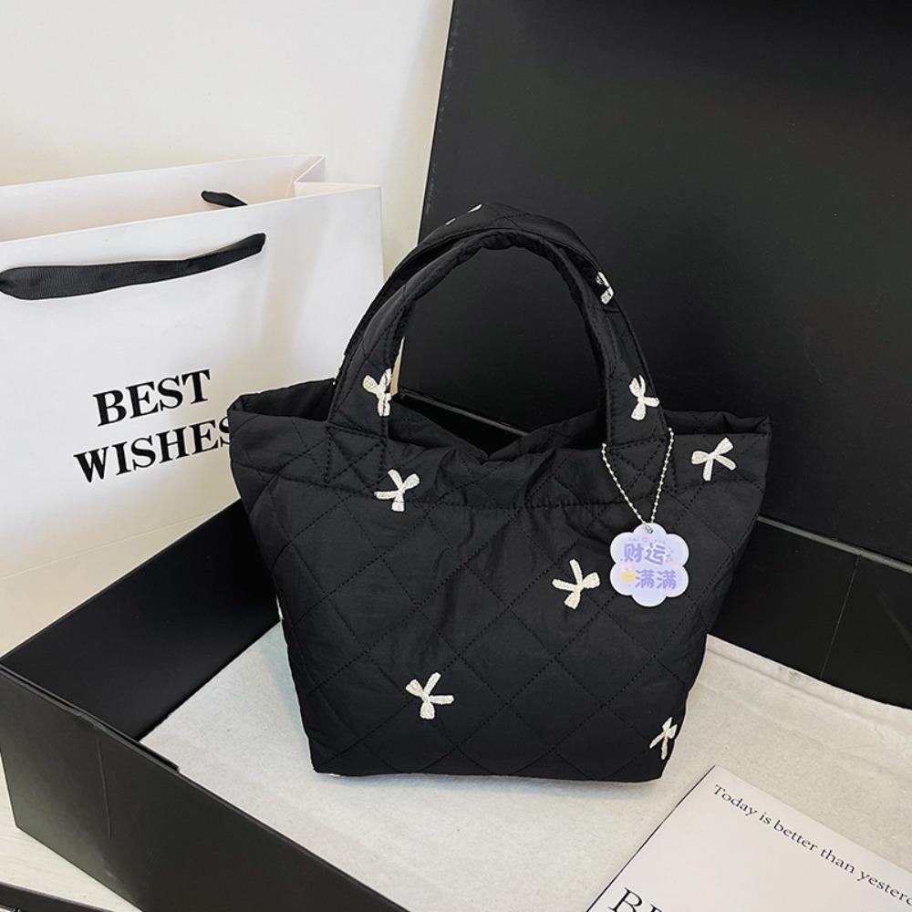 Большая вместительная стеганая сумка-мешок с бантом для обеда, новая сумка-тоут чёрный
