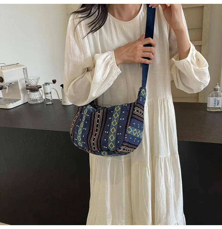 Большая вместительная сумка для пельменей в национальном стиле, женская цветная легкая холщовая сумка через плечо, женская мягкая сумка на плечо