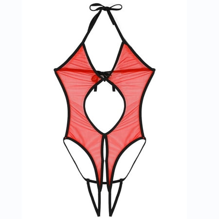 〖Roliyen〗Lingerie For Women 1 Piece Backless Mesh Bodysuit Halter Neck Lace Up Sheer Babydoll Teddy Nightie Lace Up Lingerie Fishing Net Underwear Sleepwear Steel Ring Pajamas Gart