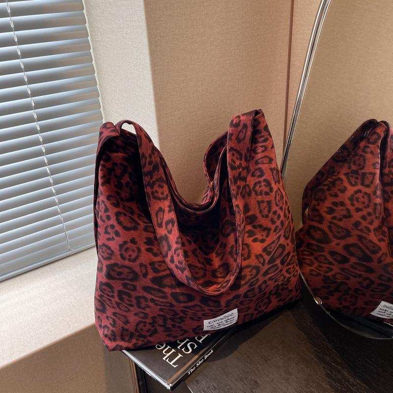 Большая вместительная сумка с леопардовым принтом в стиле ретро, женская, новинка 2024 года, модная сумка через плечо, иностранная сумка-тоут