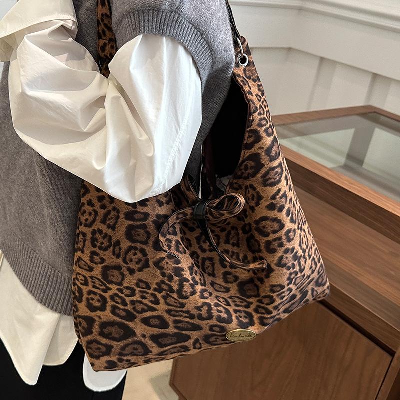 Большая вместительная сумка с леопардовым принтом для женщин на осень и зиму, новая повседневная простая сумка в стиле ретро для поездок на работу, ручная сумка через плечо