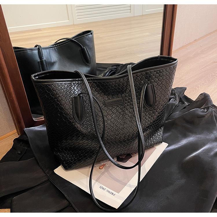 Большая вместительная сумка-тоут для женщин, повседневная сумка через плечо, модная сумка-тоут из искусственной кожи для работы, сумка в стиле ретро для поездок на работу чёрный