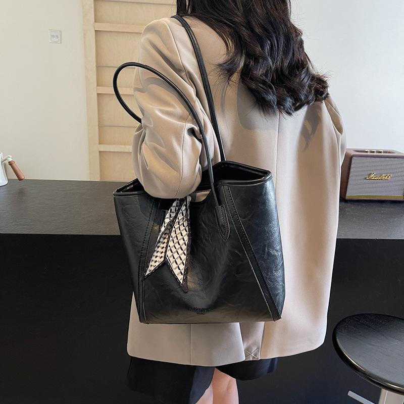 Большая вместительная сумка-тоут для женщин 2024 года, новая высококачественная сумка через плечо, универсальная модная повседневная сумка для работы и поездок на работу чёрный