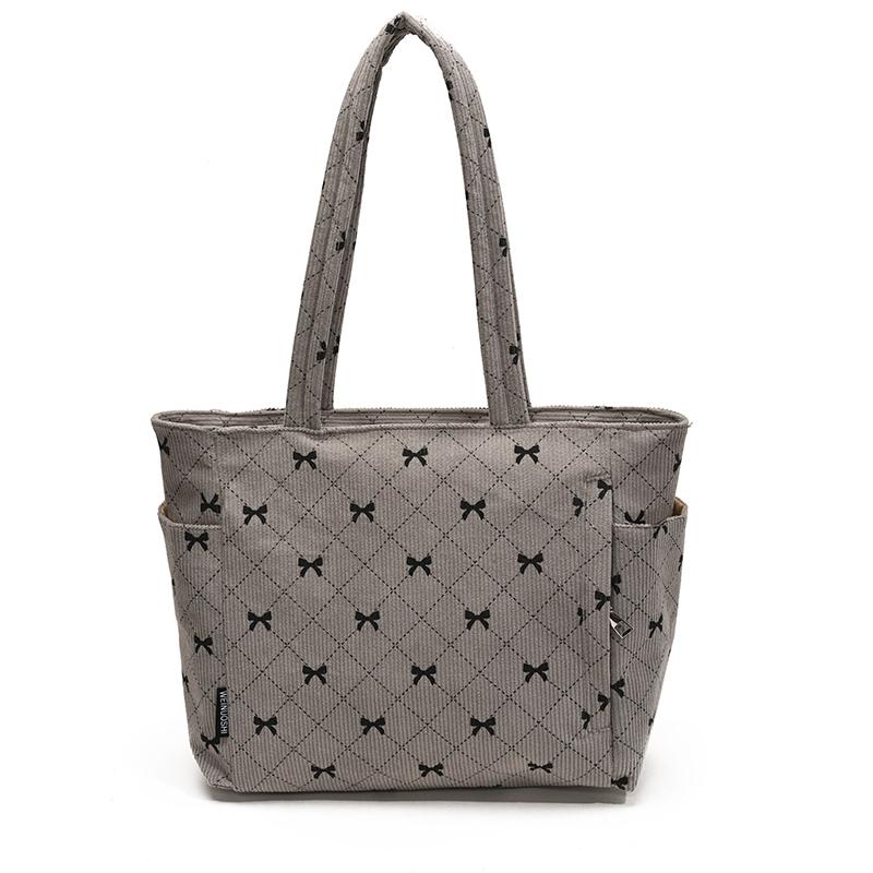 Большая вместительная сумка-тоут женская сумка через плечо с бантом из вельвета сумка для шоппинга серый