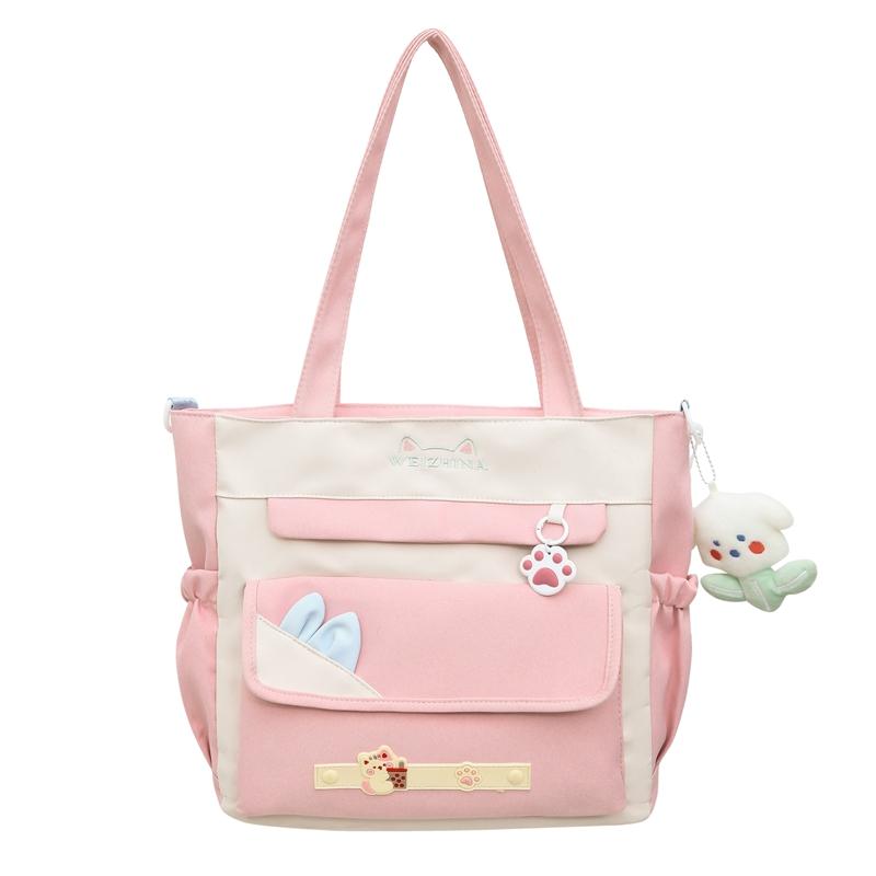 Большая вместительная сумка-тоут, студенческая сумка через плечо, цветная женская сумка через плечо розовый