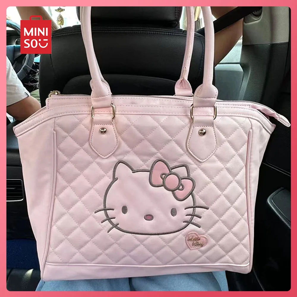 Большая вместительная сумка-тоут Hello Kitty в стиле ретро, милая Повседневная сумка из мягкой кожи с мультяшной вышивкой, простая модная дорожная сумка для хранения