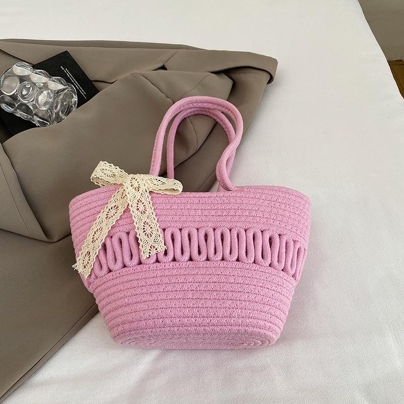 Большая вместительная сумка 2025 года, летняя новая модная пляжная сумка-тоут, нишевая тканая портативная сумка через плечо в иностранном стиле розовый