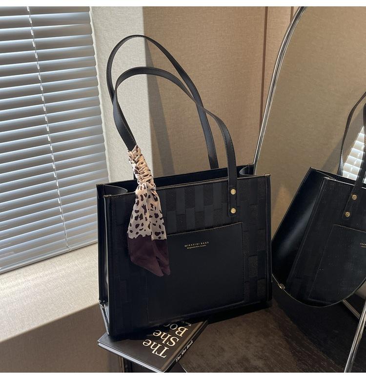Большая вместительная фактурная сумка большая женская 2024 новая зарубежная стильная осенняя сумка через плечо универсальная сумка-тоут чёрный