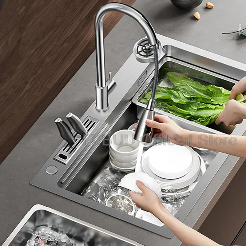 Large Capacity 304 Stainless Steel Kitchen Sink Multifunctional Single Bowl Vegetable Workstation Wash/Cut/Drain in One Full Set