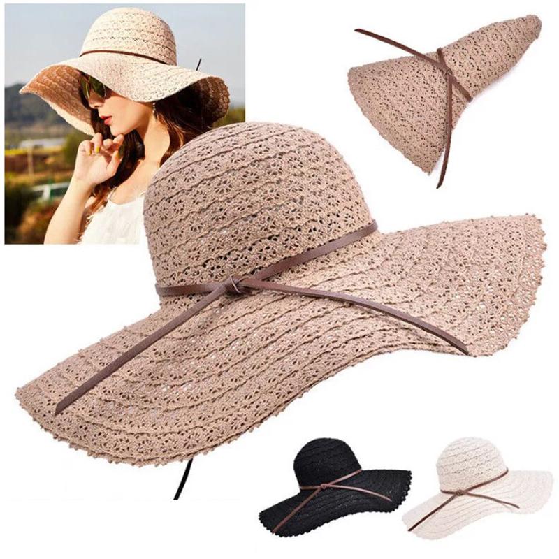 Большая женская соломенная шляпа с широкими полями, складная пляжная кепка от солнца, летняя шляпа black